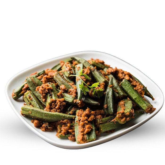 Fresh okra sautéed with onions, tomatoes, and a blend of earthy Indian spices—flavorful, mildly spiced, and perfectly cooked for a classic vegan delight.