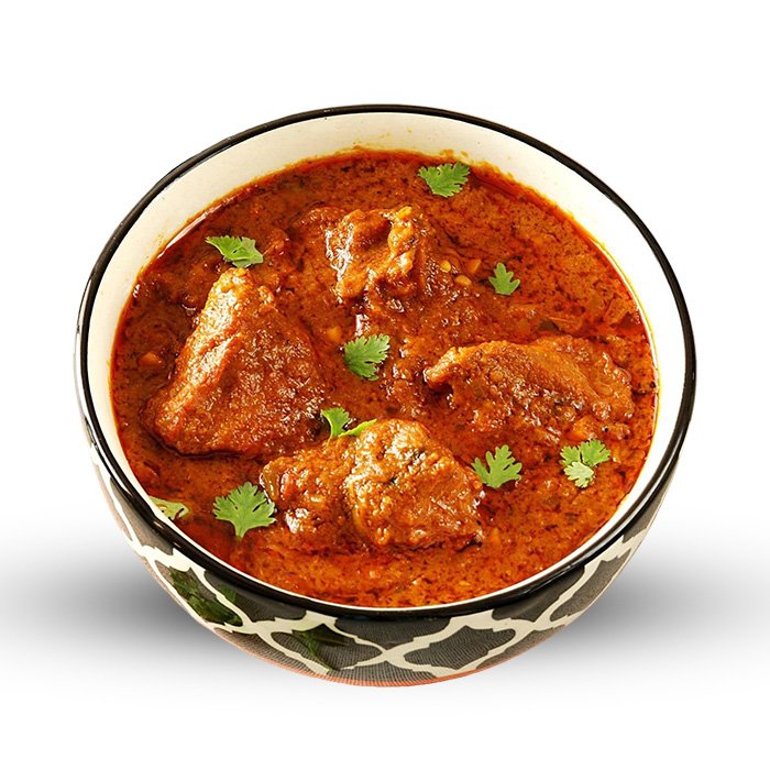 Tender lamb chunks slow-cooked in a rich, spiced onion-tomato gravy—robust, aromatic, and full of deep, traditional Indian flavors that pair perfectly with naan or rice.