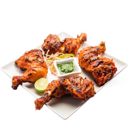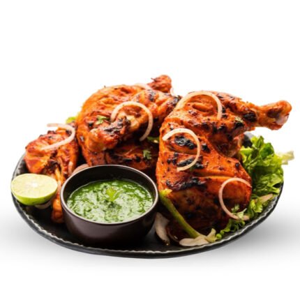 Whole chicken marinated in a rich blend of yogurt, spices, and herbs, then slow-roasted in a traditional tandoor oven—smoky, juicy, and bursting with bold tandoori flavor from skin to bone.
